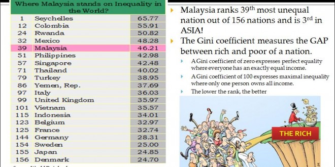 Malaysia’s Gini Index did not move at all in 20 years. Malaysia is the 3rd most unequal nation in ASIA! We have the 3rd biggest GAP between the rich and poor. We are worse than Philippines, Thailand and even Indonesia. Our rich are very rich and our poor, very poor! Income Inequality is bad and has to be addressed. Are …